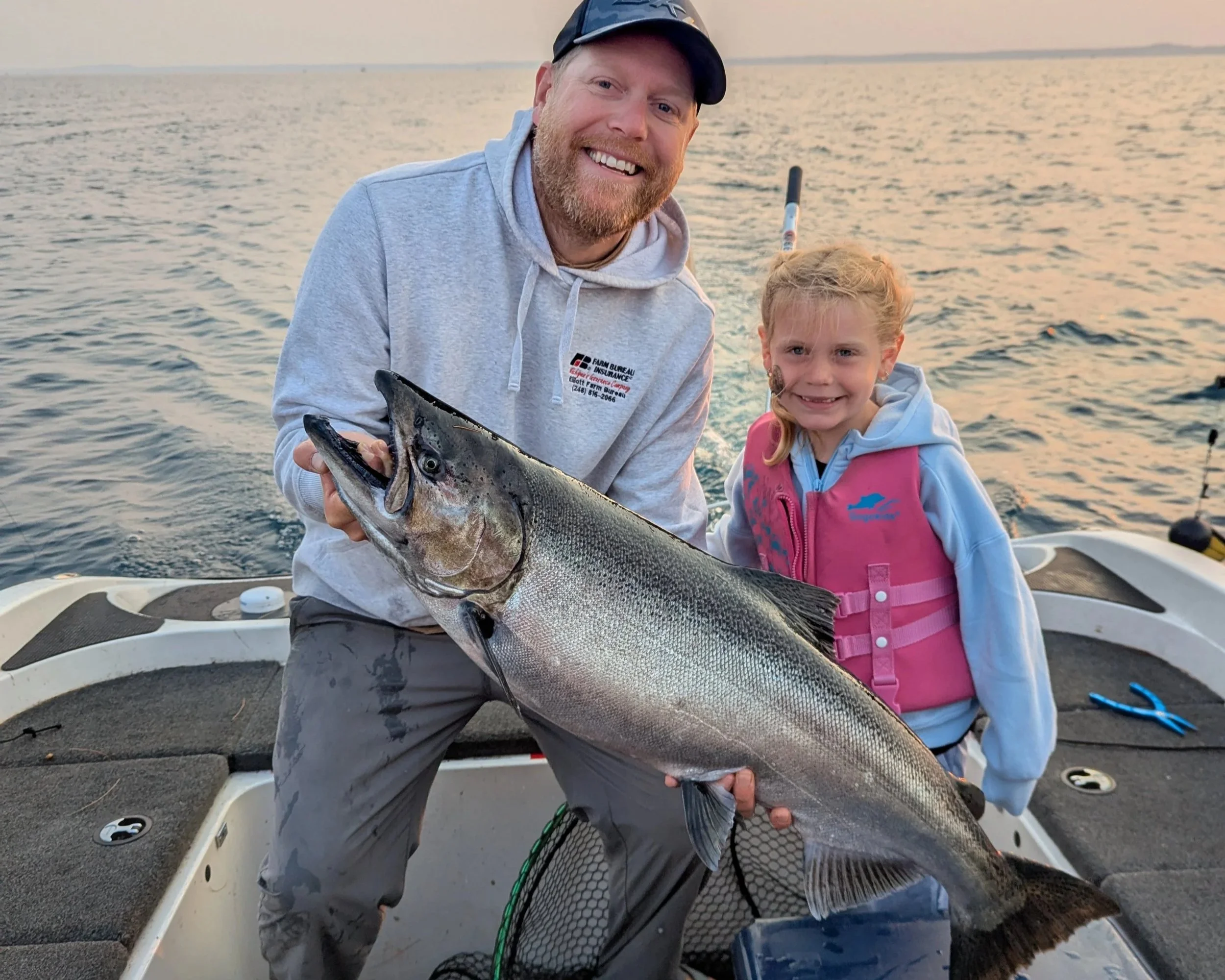 Chinook or King Salmon (Oncorhynchus tshawytscha) - This has to be the most iconic of all the Great Lakes Species. They get big, fight hard, and power the fishing industry here on Lake Michigan. Who doesn’t want to reel in one of those “20 pound” summer kings on the big lake? The Pacific salmon species (kings and cohos) are probably one of the most successful fisheries introductions in the history of the world. That historic introduction was made in 1967 by the Michigan DNR with a primary objective to suppress alewife numbers in the Lake. It would become a much bigger deal than that and in modern times a significant chunk of the estimated 5.1 billion dollar Great Lakes Fishery can be contributed to kings. It is interesting to note that between 1873 and 1933 and estimated 11 million chinook were planted in the Great Lakes. However it wasn’t until that introduction in 1967 and the arrival of the alewives that they were able to prosper. Lake Michigan and Lake Ontario are the most famous chinook fisheries with Lake Huron and Lake Superior supporting some kings too. There is a lot of natural reproduction in the current fishery with big numbers of wild fish coming out of some West Michigan tributaries.